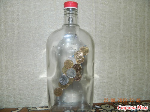 ну и после того как высохнет черная, "чпокаем" губкой по бутылке с золотой или бронзовой краской