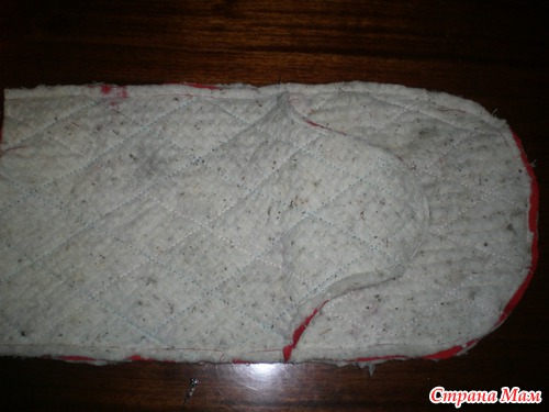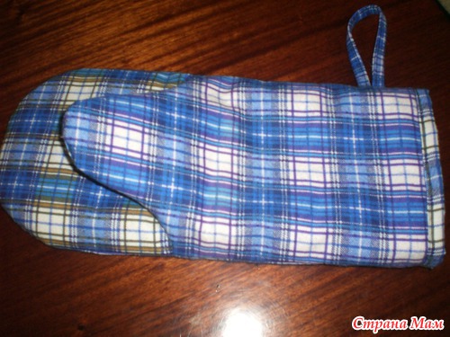 Соединила части прихватки, сначала обтачала большой палец, потом всю прихватку.