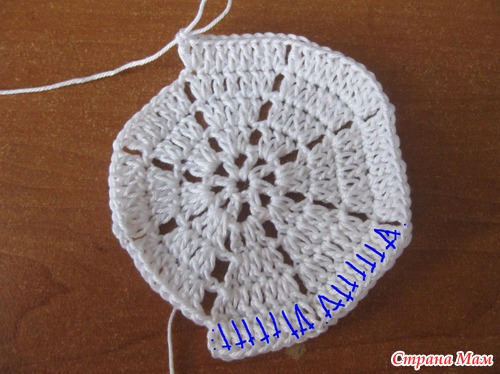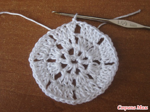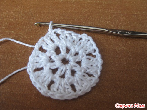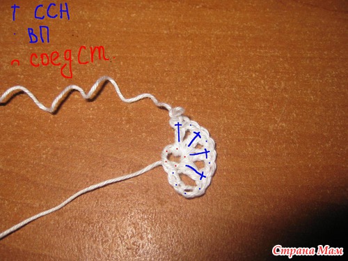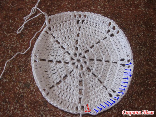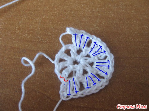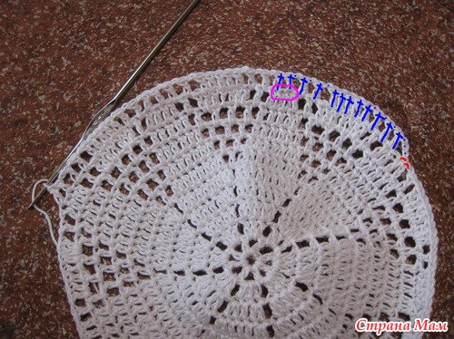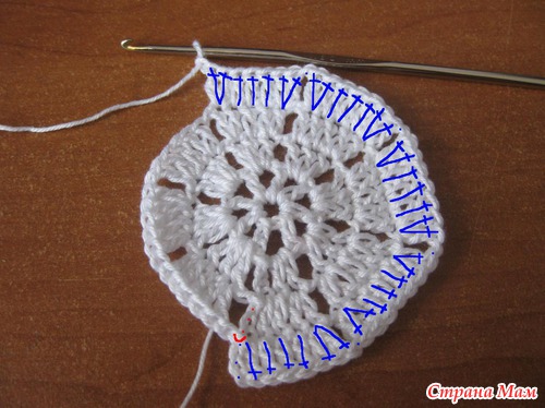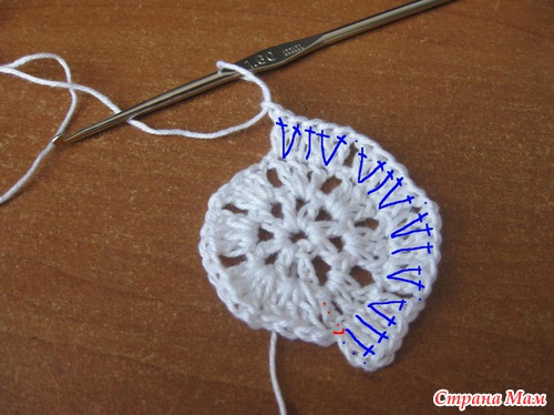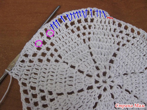 здесь в круглешочки обвела, чтоб посмотрели где вяжу под две ниточки, а где под три ниточки ( в серединку столбика)