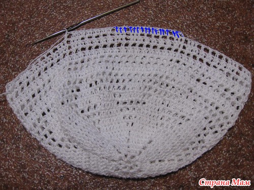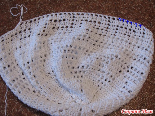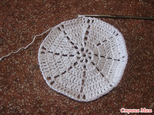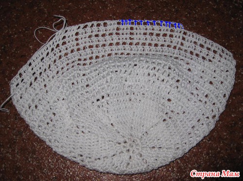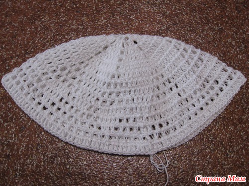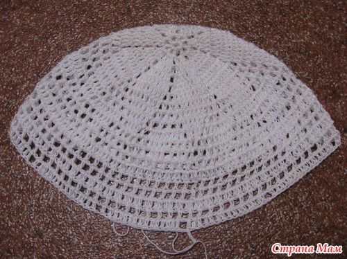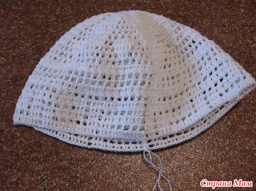 ВЫСОТУ ТЮБЕТЕЙКИ можно регулировать за счет рядов сеточки, можно оставить один, можно связать три, а можно после первого ряда обычных столбиков сразу вязать рисунок... Низ я обвязала, в данной тюбетейке, рачьим шагом.