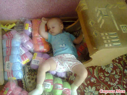 Вот так помогал сынок маме, ооооооооооочень устал и лег поспать прям на том же материале, что и помогал маме разбирать (на пряже) тяжелая была работа, надо поспать Читать полностью