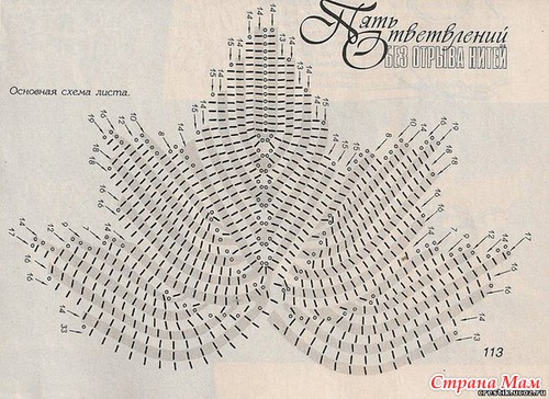 Протянуть нить через следующие 3 петли сразу за один прием Листок, 10