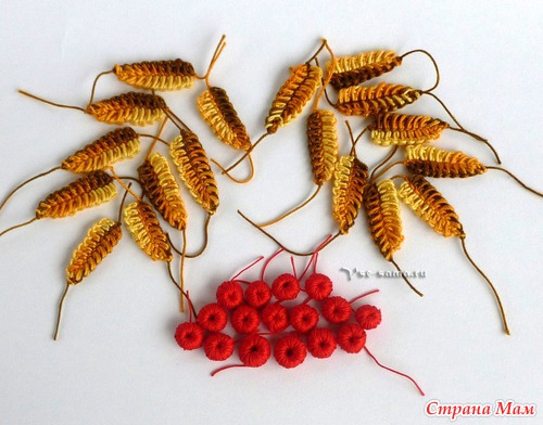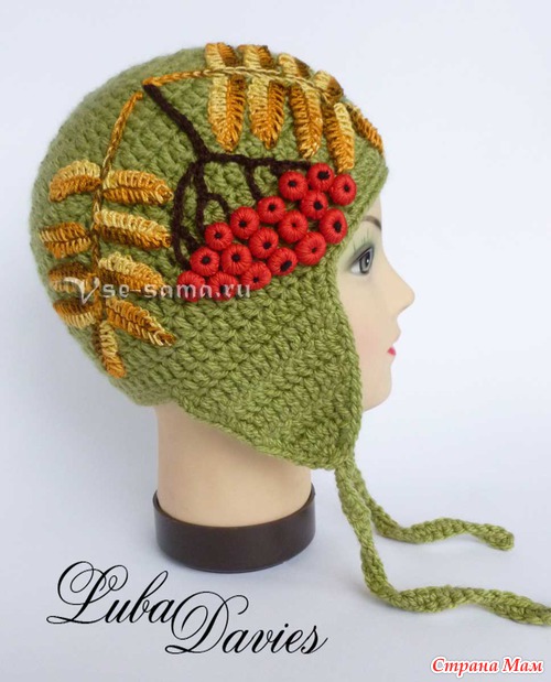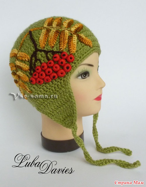 Данный мастер-класс представлен в пошаговом фото-формате только для листьев и ягод. Описание для шапочки не приводится.