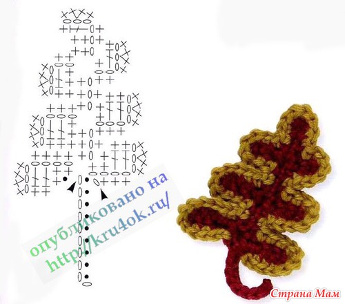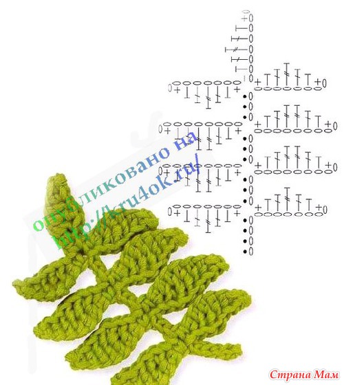 Теперь мы свяжем 6 листиков., Все они вяжутся по одной схеме: