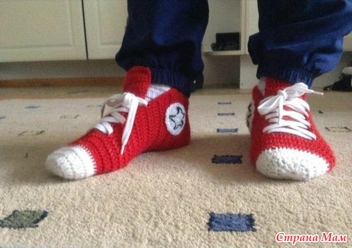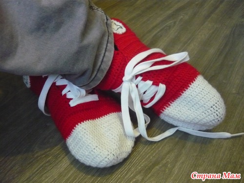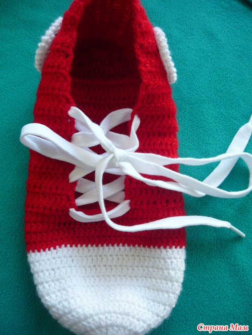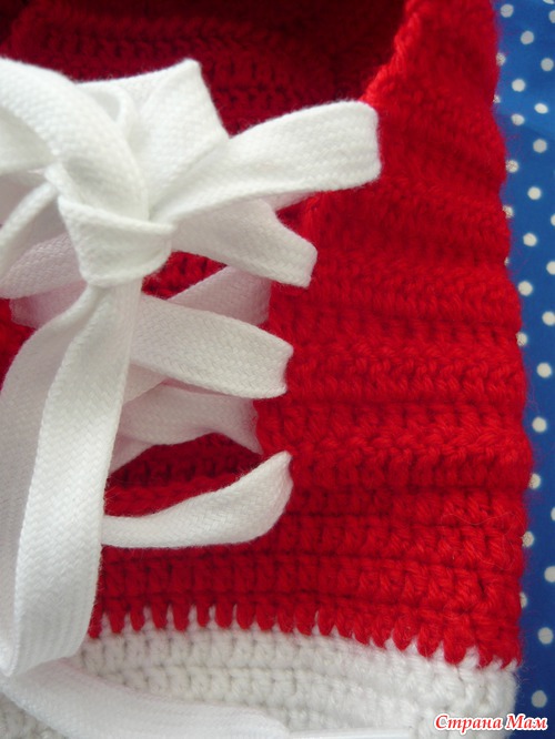 С изнанки подняла 20 петель для язычка и провязала их. Вставила шнурки и все готово.