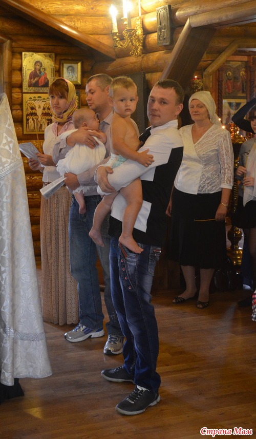 Мне пришлось на пороге стоять, так как не смогла вырваться в церковь, чтобы дали мне разрешение находиться рядом с сыночком, и только в конце крещения прочитав надо мной молитву, взяла сына на руки, и он уснул.