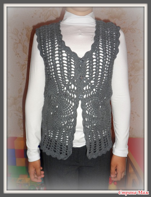 Всем доброго времени суток Связался вот такой жилетик для моей дочурки в школу... Ниточки Котон Голд, крючок 3,0, ушло почти 2 моточка Использовала вот эти схемы Спасибо всем за внимание!!! Читать полностью