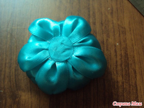 А вот так выглядит наш цветок с изнанки. Сюда мы и приклеиваем заготовочку с резинкой.