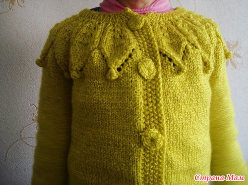 Кокетка на кофточке необычная.