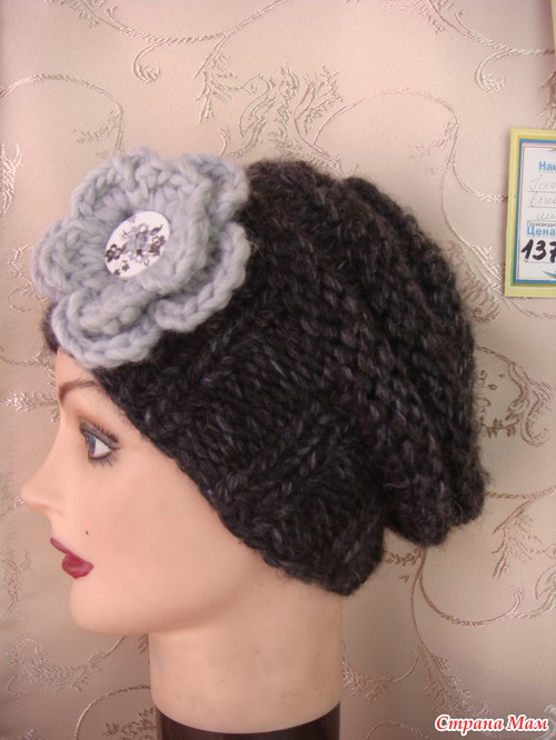 Примерила девушка из соседнего отдела - у неё довольно крупная голова, налезла, но трЭба побольше. Шапка ей очень понравилась. Уже заказала светлую, такую как цветок.