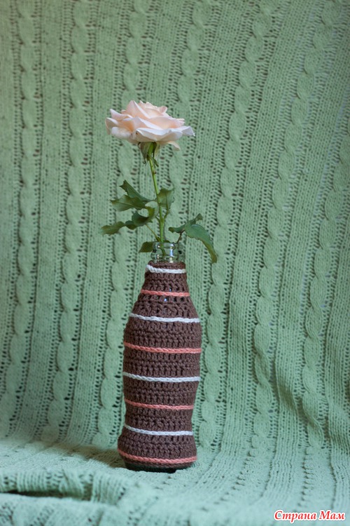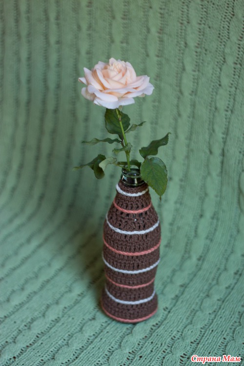 а вчера я связала вазочку для цветов, которые выращивает моя мама!!! я очень люблю вот такие маленькие и изящные розочки!!! ну прям млею от них. и всегда была проблема куда бы одну такую маленькую поставить)))) вот проблему решила баночка от кока колы 0,25!