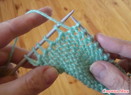 15. Парочку (петля+накид) провязываем лицевой петлей.