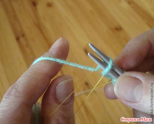 3. Набираем петли. Петель должно быть половинное количество от необходимого. Например, нужно для вязания носков 48 петель(для взрослого человека), значит набираем 24. Если вяжем носки поменьше размером, то и петель будет поменьше.