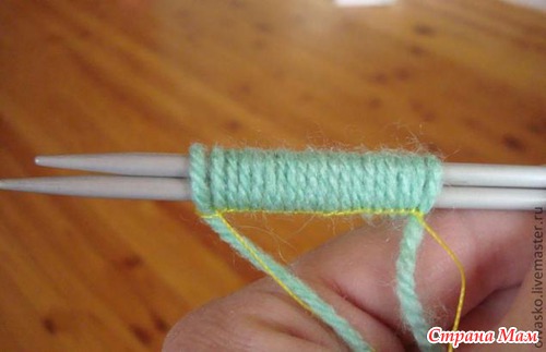 18. На двух спицах у нас должно получиться необходимое количество петель. Расположены они на двух спицах.