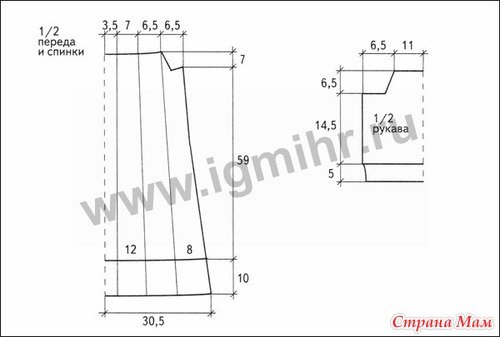 Правый рукав. Вязать, как левый рукав, но по схеме 3.
