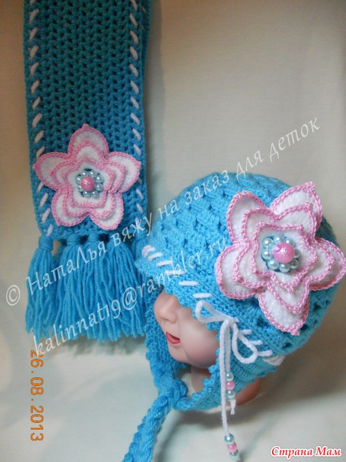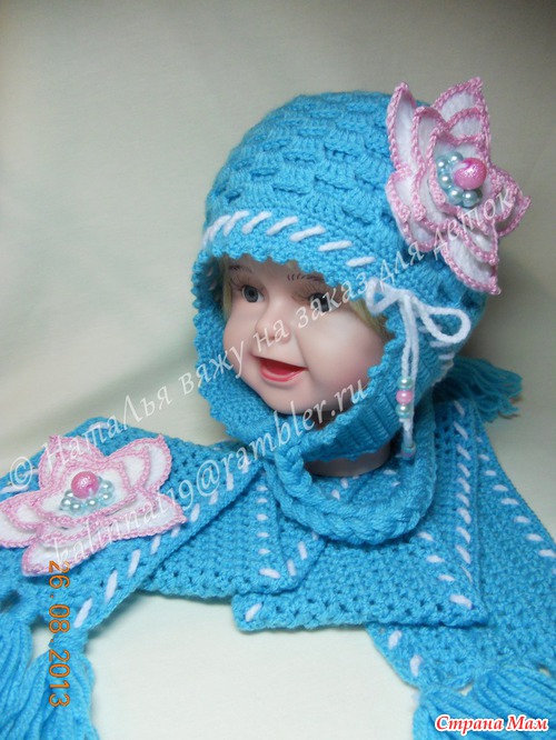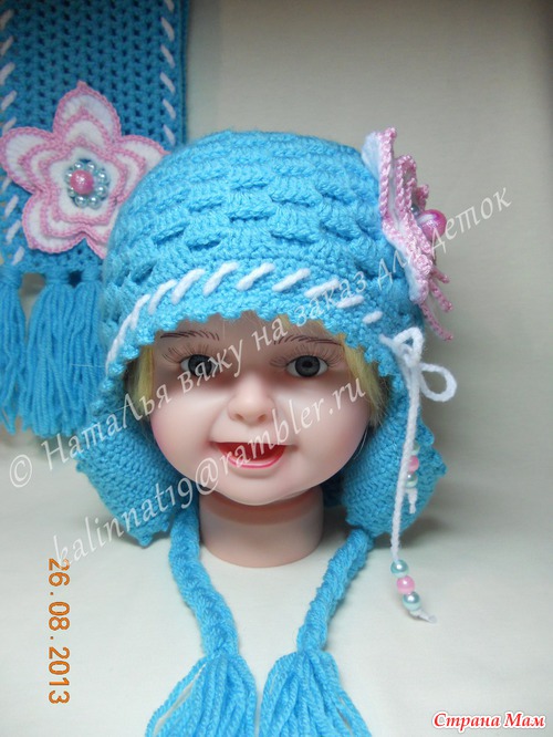 Очень симпатичный комплектик! Хочу связать такой же для своей иногородней племянницы, Нельзя ли вас попросить измерить расстояние между ушками и ширину ушка. Боюсь промахнуться)))