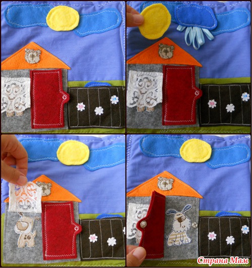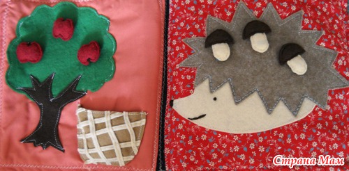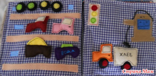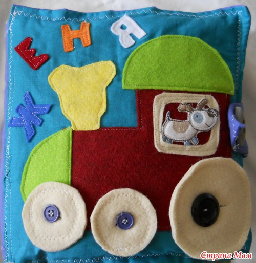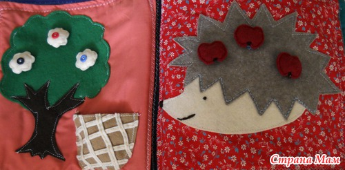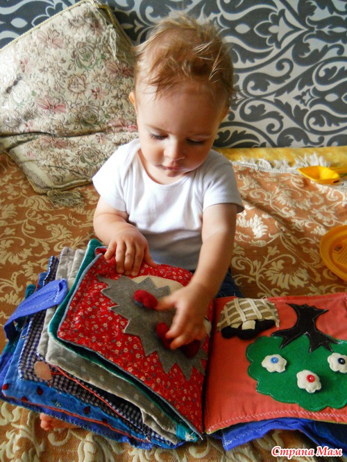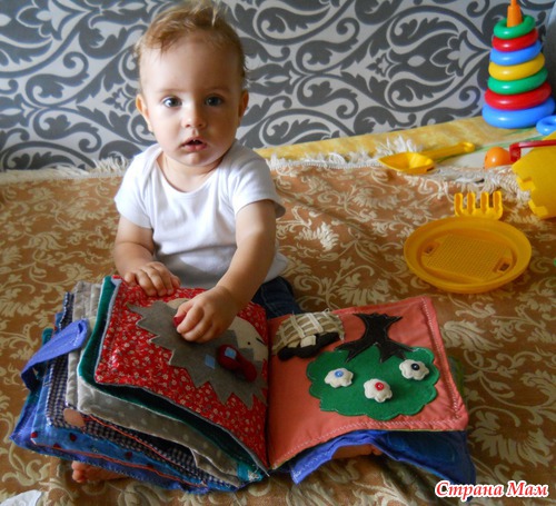 Еще будучи беременной увидела в интернете идею развивающей книги и решила сделать. Долго искала что то интересное-все книги были похожи, а хотелось чего то этакого))))). Начала еще будучи беременной, но закончила только сейчас. Подарили мне недавно швейную машинку и я взялась за дело)))) Женечка от нее в восторге, и это главное!!!