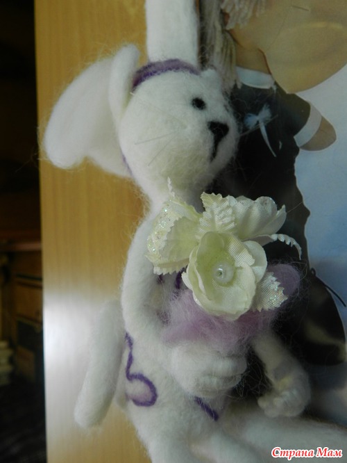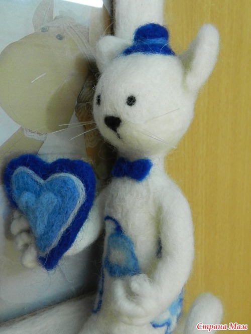 а именно валяная свадебная парочка. Так как девичья фамилия сестренки была кошачья, решено было свалять кошечек.