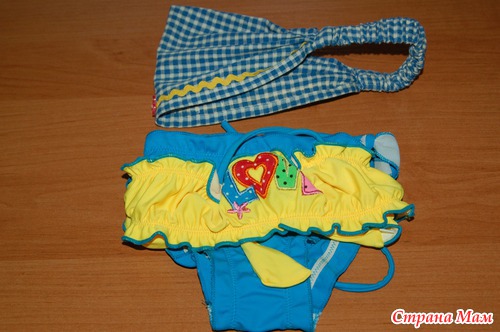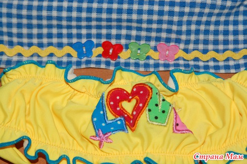 Для отделки использовала пуговки, цвета которых полностью повторяют цвета надписи на купальнике