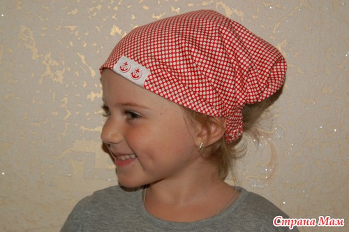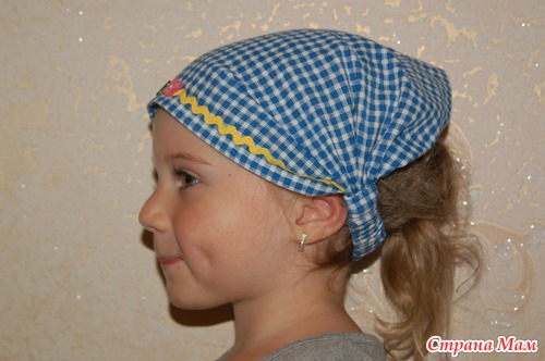 Бандану раскроила, пересняв выкройку с имеющейся у нас трикотажной банданы.