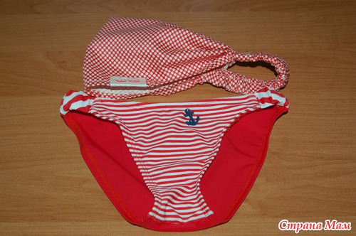 На плавочках якорь, поэтому и косыночку украсила пуговками с якорем.