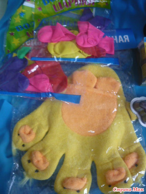 это для моей малявочки Софьюшки! куча красивых и ярких воздушных шариков!! и суперская мочалочка для купания!!! она уже утащила утеночка и бегает с ней по квартире!!!