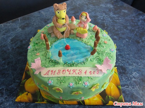 И так первый тортик Маша и миша на рыбалке, внутри воздушный сникерс, 2,3 кг.
