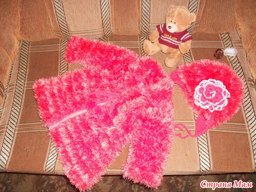 Вот связался у меня такой комплектик для маленькой девочки. Шубка и шапка из травки.