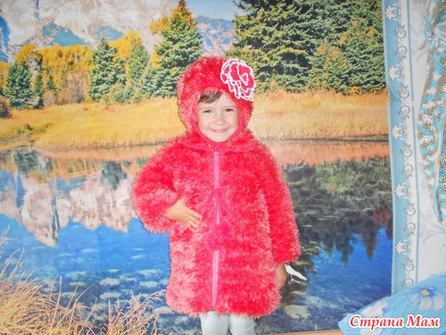 Позирует моя доча. Ей шубка немного маловата хозяйка комплекта поменьше думаю ей будет хорошо.