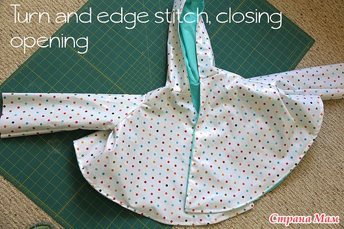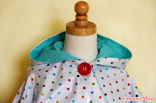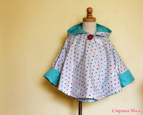 Наткнулась в интернете на один очень простой, как показалось МК по пошиву пончо для девочки из ламинированной ткани.