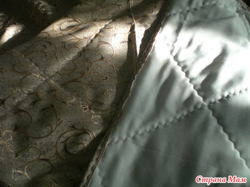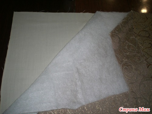 Использовала 3 материала размером 1,5 - 2,0 м.: верх шторный плотный шелк, нижняя ткань тонкая шерсть с времен СССР, а прокладочная ткань - синтепон ( самый тонкий)