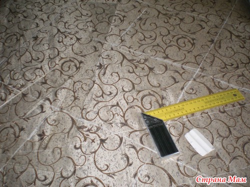 При помощи угольника и лекала расчертила на квадраты по диагонали.