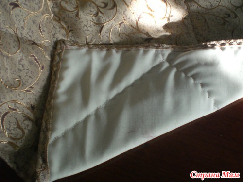 Сложила все слои сколола булавками и прометала косыми и прямыми сметочными стежками.