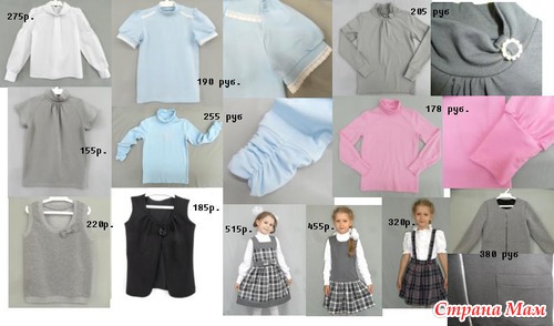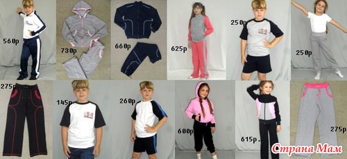 Ассортимент: блузки, водолазки различных цветов, жилеты трикотажные и текстильные для мальчиков и девочек. Сарафаны и юбки для юных школьниц. Спортивные костюмы из трикотажного полотна, футболки, шорты - все в наличии на рост от 122см до 152 см.