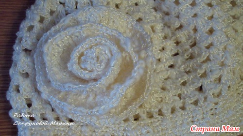 Розу вязала так: набрала 55 вп, 1-й ряд в каждую петлю предыдущего ряда по 2 ст2н; 2 ряд - прибавки через столбик. т. е. 2 ст2н, ст2н, 2 ст2н...