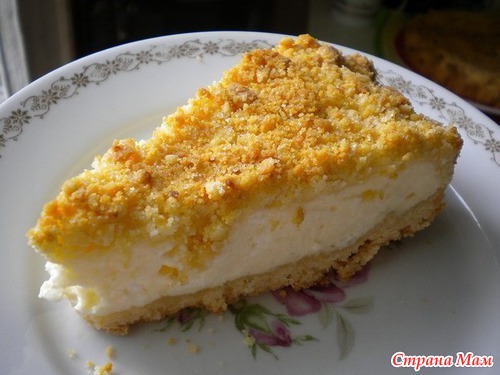 На крошку выливаем творожную массу.