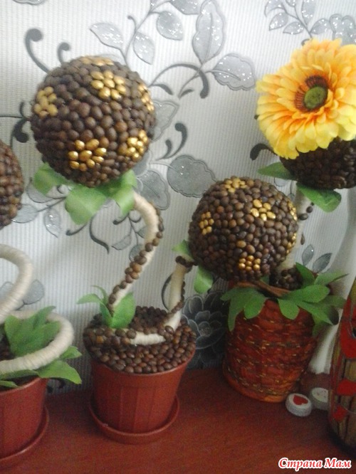 Хочу поделиться своим увлечением, которое появилось у меня находясь в декретном отпуске!!! кофейные топиарии мне так понравились, о их существовании я узнала случайно о и совсем недавно!!! я конечно только учусь, но думаю начало творчества стоящее!!! очень хочется пообщаться с "коллегами"по увлечению.