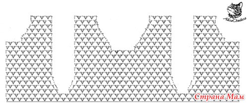 набираем 186вп +3вп подъема и вяжем по схеме 25 рядов, далее переходим к полочкам.