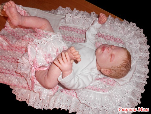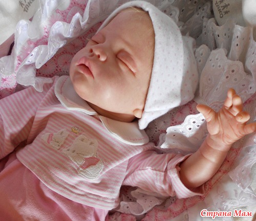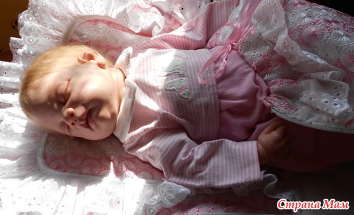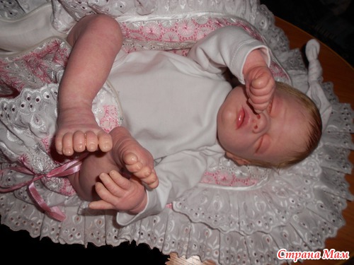 Софийка родилась 11 августа 2013года. Малышка сделана из молда " CradleKit Collection " скульптора Linda Murray в мастерской автора-реборниста Ирины Алёшиной. Тельце нежно-молочного оттенка, расписанное в мельчайших деталях, утяжелено стеклянным гранулятом и синтепухом.