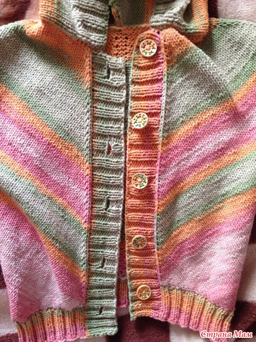 Кофта связана на заказ на 2х летнюю девочку из пряжи Ализе Коттон голд Батик Расход пряжи - чуть больше двух мотков. Принцип вязания по ссылке http://xn--90abksbew2b0b.xn--p1ai/ Пуговицы заказаны из Китая. Читать полностью