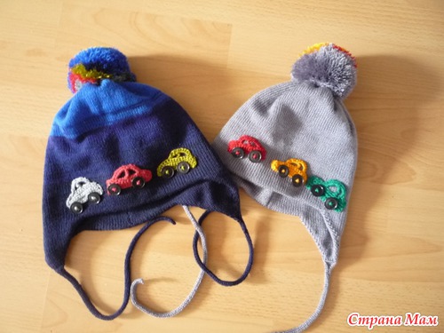 Работы сегодняшнего дня. Шапочки для мальчика, связаны по одному шаблону, разных размеров. Связаны на машине Сильвер 840, в 3 нити. Аппликации связаны крючком. Читать полностью