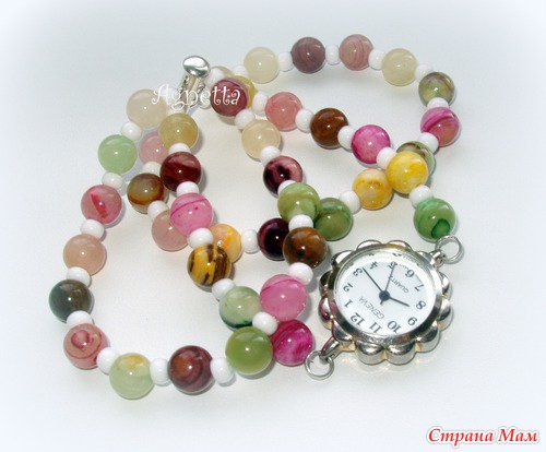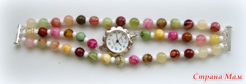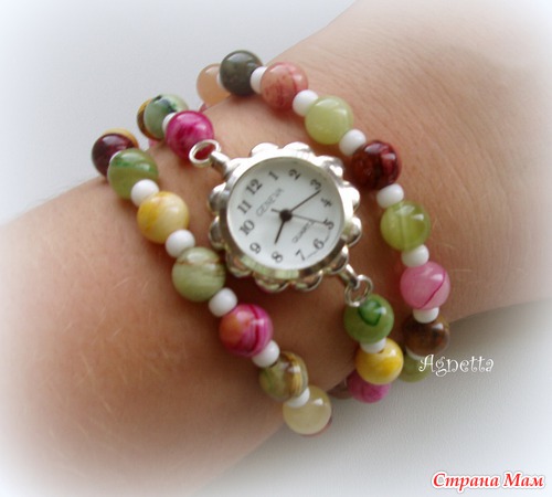 кварцевый часовой механизм Geneva, агат, чешский бисер