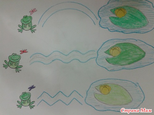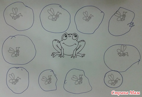 "Продолжи ряд" Нужно помочь лягушке добраться до другой стороны - построить кочки по заданному рисунку