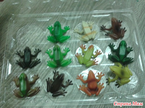 Купила набор лягушек. Что только мы с ними не делали. Очень милые лягушата. Приспособили упаковку из-под конфет под их домик. Я в о обще очень люблю такие игрушки (ну, не только я, но и дочь конечно))) Дают очень большой простор для занятий. Это и счетный материал и для сюжетно-ролевых игр подходят и память развивать - выложить в ряд несколько лягушек и запоминать, потом одну две убирать или менять местами и ребенок должен отгадывать и т. д.