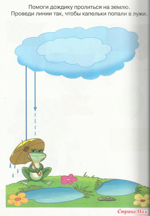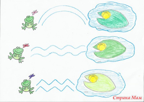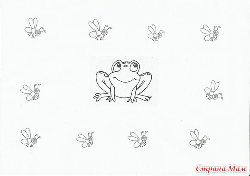 "Поймаем комариков" - провести линии от лягушки до комариков.