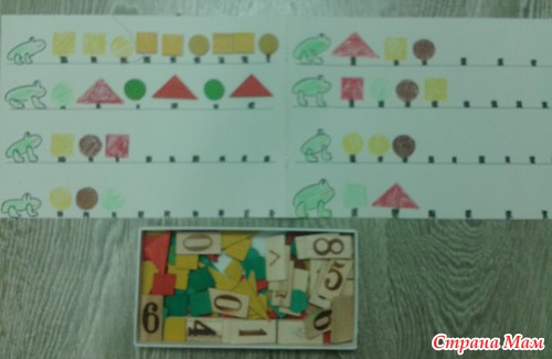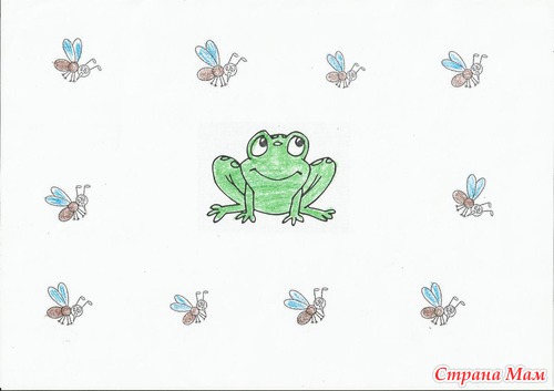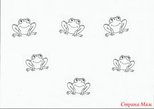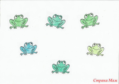 Вариант попроще - посчитайте лягушек. Найдите отличие, лягушек обведите желтым карандашом, лягушек зеленым.