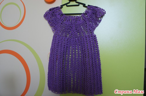 Перед отъездом, в быстром темпе , связала для дочки туничку в которои мы ходили на пляж. Ниточки Джинс, крючок №2. Схемку кокетки нашла в инете, начала по ней вязать, но получалось не очень и дальше придумывала из головы.