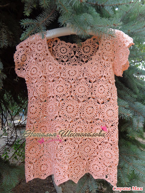 Кофточка из мотивов цвета лосось
