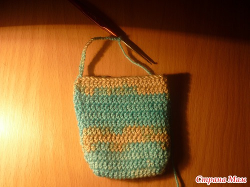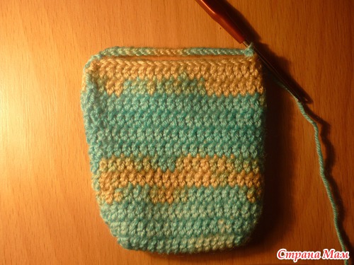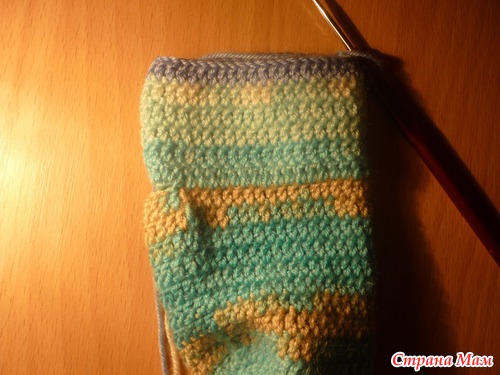 Дальше провязываем 8 рядов по кругу основным узором - у меня это обычные столбики с одним накидом