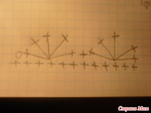 Теперь раскладываем наше вязание как на фото, набираем цепочку из 21 в. п.